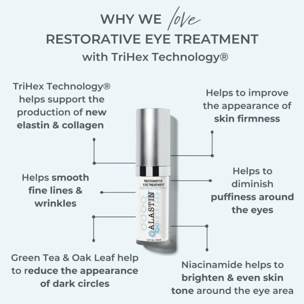 The Restorative Eye Complex visibly reduces the appearance of dark circles, puffiness, and fine lines and promoting a more youthful look. Both products harness the unique TriHex Technology® - a blend of active peptides and key ingredients that supports your skin's natural ability to produce new, healthy elastin and collagen.
