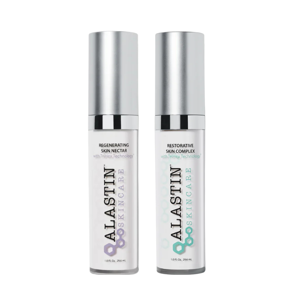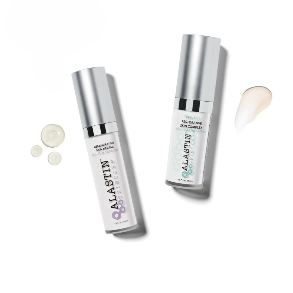 Alastin TriHex Transition Duo features two advanced formulations powered by patented TriHex Technology®. The first is the Alastin Regenerating Skin Nectar, designed for sensitive or compromised skin and ideal for use post-cosmetic treatment to enhance and maintain treatment outcomes. The Alastin Restorative Skin Complex strengthens skin while improving the appearance of wrinkles, fine lines, and other visible signs of ageing.