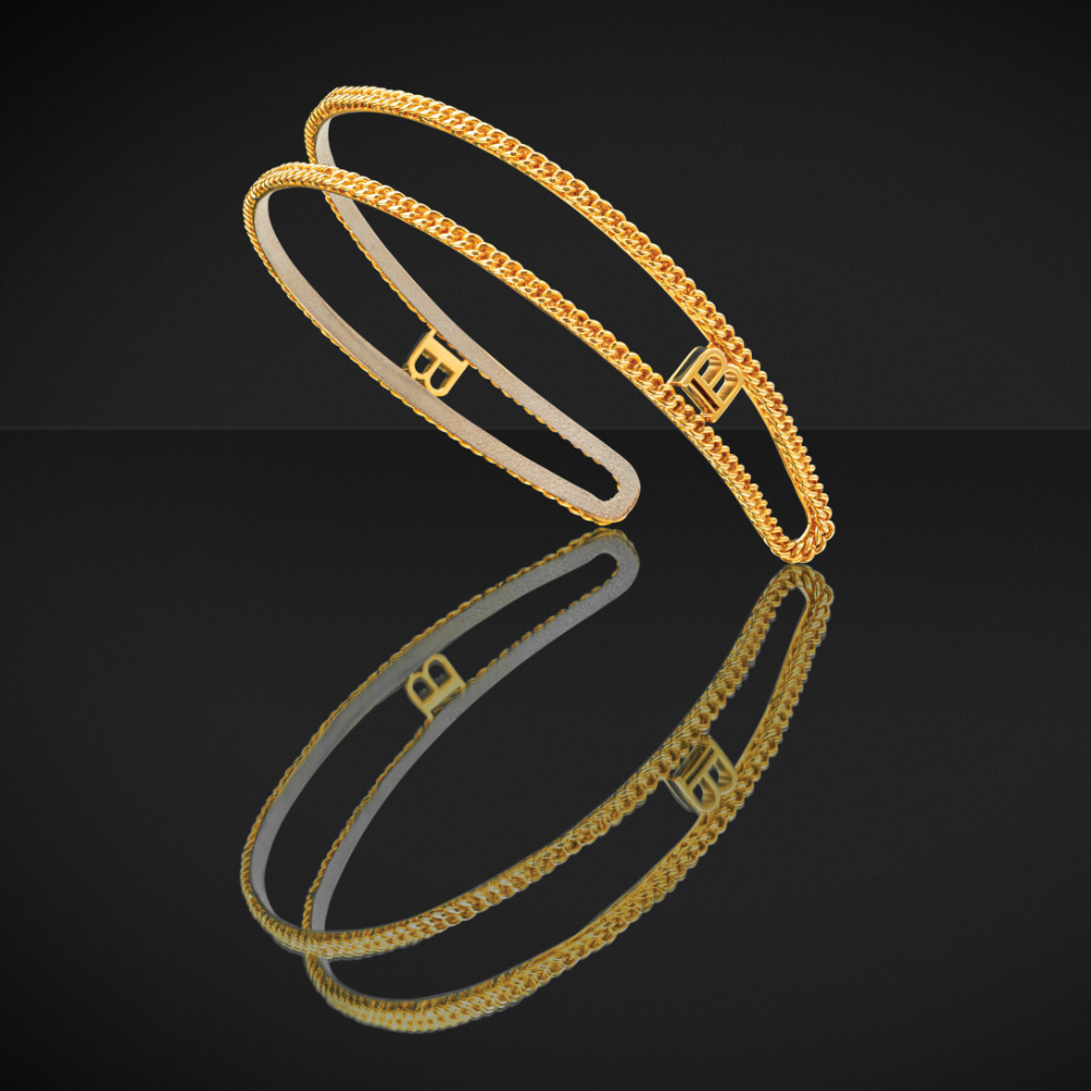 Limited edition 18K gold plated headband with nubuck lining to give extra grip onto the hair. Inspired by the Parisian Pont des Arts love locks. Embellished with a signature logo on both sides of the headband.