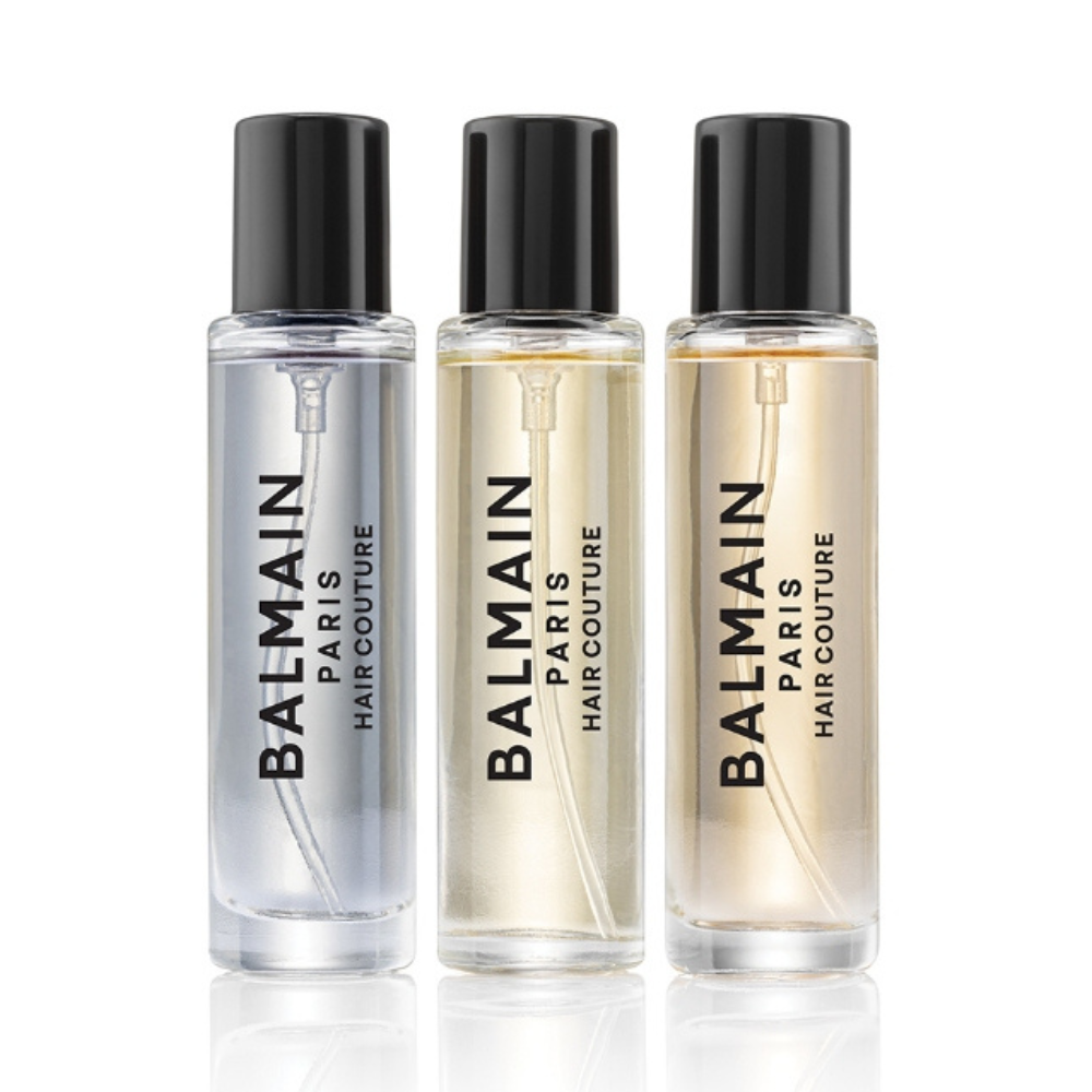 - Balmain Hair Perfume: To activate the scent, remove the magnetic cap off the bottle and spray the Hair Perfume onto a brush or directly onto the hair for nourished hair with a delicate scent.
