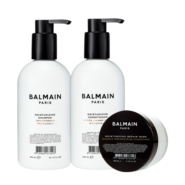 Dive into the world of luxury haircare with Balmain's Moisturizing Trio Set, designed to cater to the needs of dry, damaged, or coloured hair.
