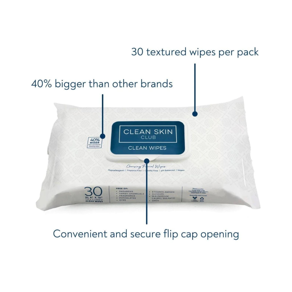 Clean Skin Club Clean Wipes is available in: 30pcs