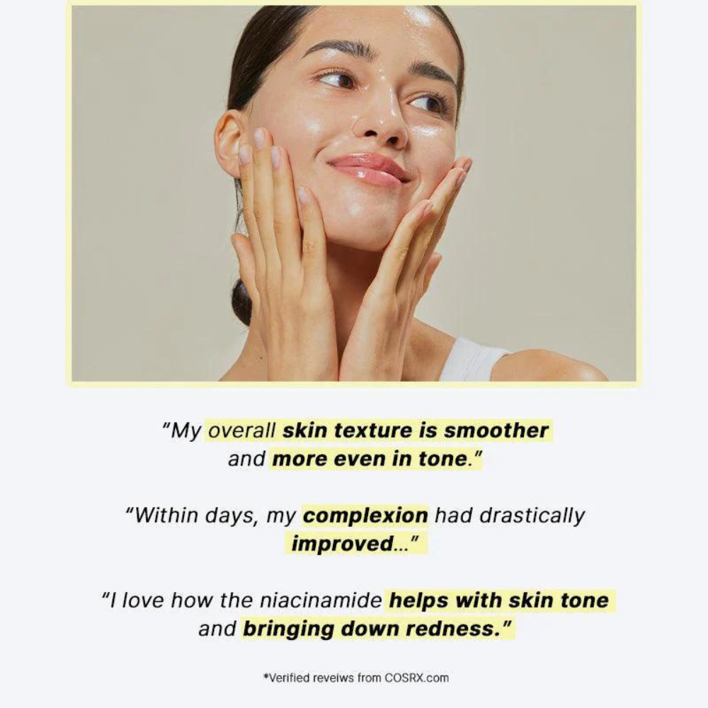 - Contains 5% Niacinamide to brighten and strengthen the skin’s barrier.