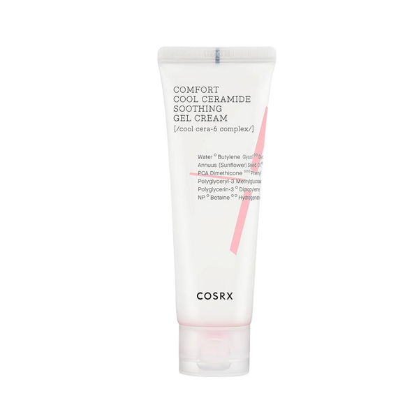 COSRX Balancium Comfort Cool Ceramide Soothing Gel Cream is a refreshing gel moisturiser designed to calm, repair and hydrate sensitive skin. Formulated with six types of ceramides, it strengthens the skin barrier while delivering long-lasting moisture that feels weightless and fresh.