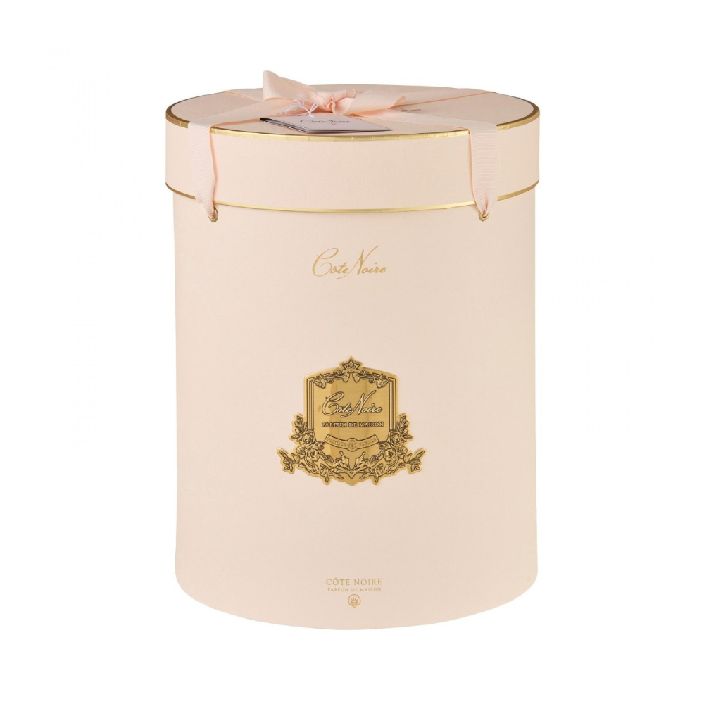 Included are two 10ml bottles of exquisite scented perfumes: Rose Oud, featuring young fragrant rose warmed by afternoon sun with lingering hibiscus notes, and Charente Rose, a natural rose blend with rose petal, rose leaf, and white musk. These allow you to refresh and enhance the fragrance as desired, whilst the elegant round ribboned Cote Noire box provides beautiful gift presentation.