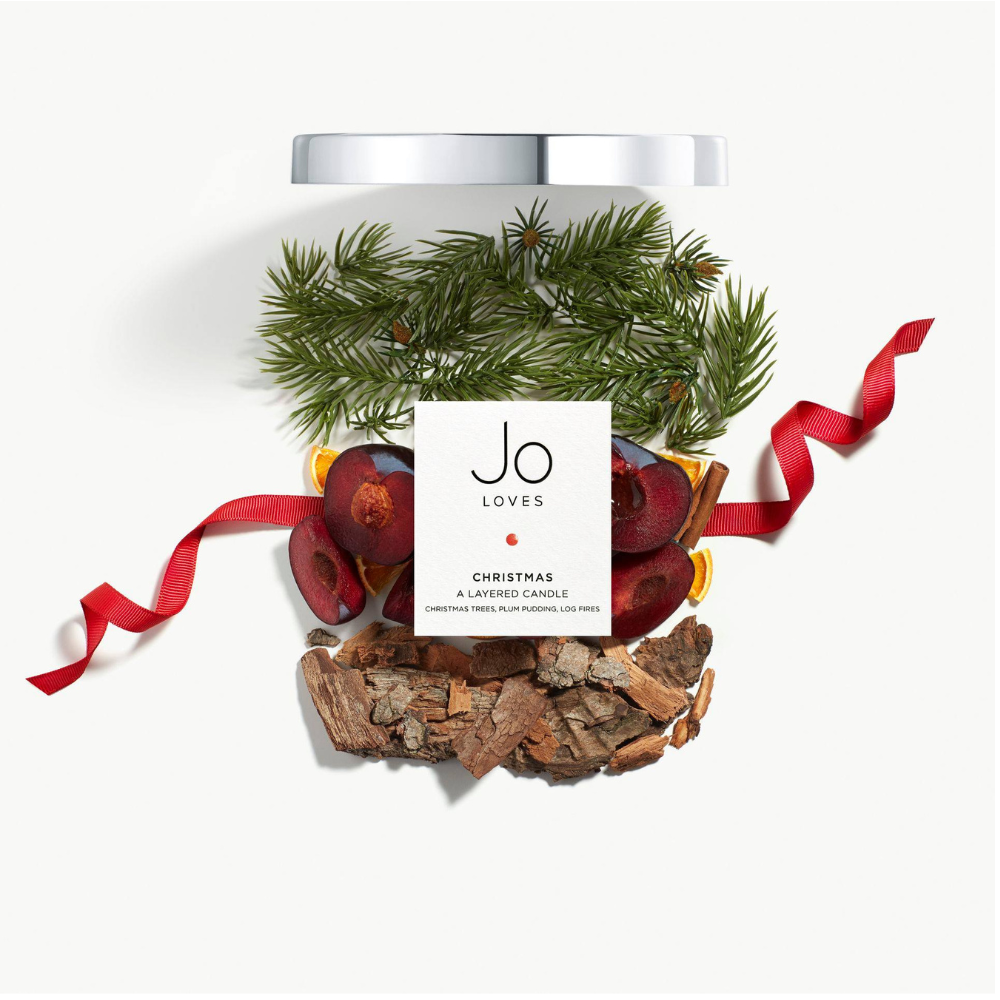 - Unique to Jo Loves the Christmas Layered Candle combines three individual festive scents one on top of each other. A first of its kind candle, perfect for events and hosting dinner on Christmas day.Scent Layers: Snowflakes, Roasted Chestnuts and GingerbreadThe beautiful candle features a design by Warner House, especially commissioned by Jo Loves to celebrate traditions, storytelling and craftsmanship.Available only at Jo Loves, the Layered Candle offers a distinctive fragrance journey with its three-tiered scent profile. As it burns, you’ll savour each aroma in succession: starting with the sweet warmth of Salted Caramel, transitioning to the rich, smoky essence of Log Fires, and concluding with the crisp, fresh notes of Snowflakes.