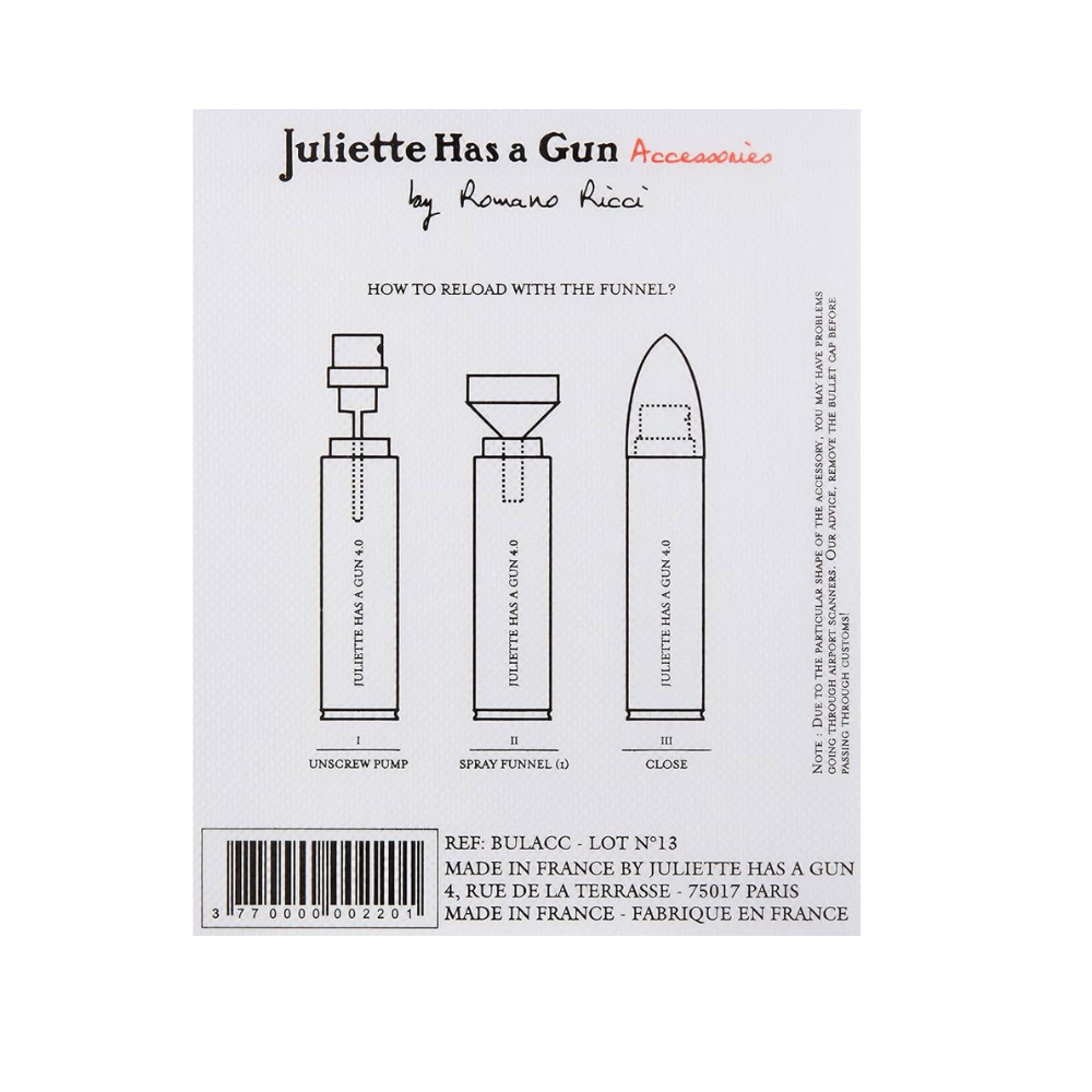 *Note: The bullet does not contain fragrance and is empty. To fill, simply spray your favorite fragrance into the funnel.