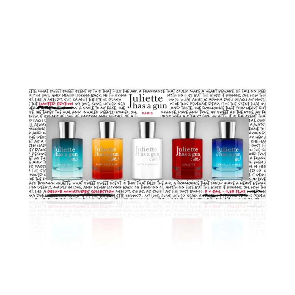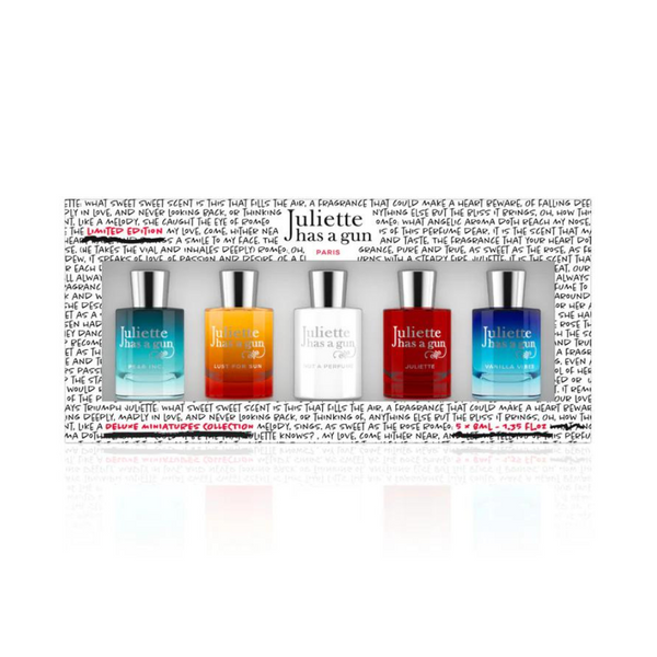 Embark on an olfactory journey with the Juliette Has A Gun Deluxe Miniature Collection, featuring five 8ml miniature fragrances.