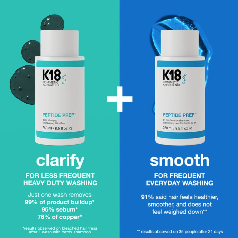 Prepare your hair with the K18 Peptide Prep Detox Shampoo, which removes impurities and buildup for maximum treatment absorption. This powerful duo ensures your hair receives the ultimate repair and protection it deserves.