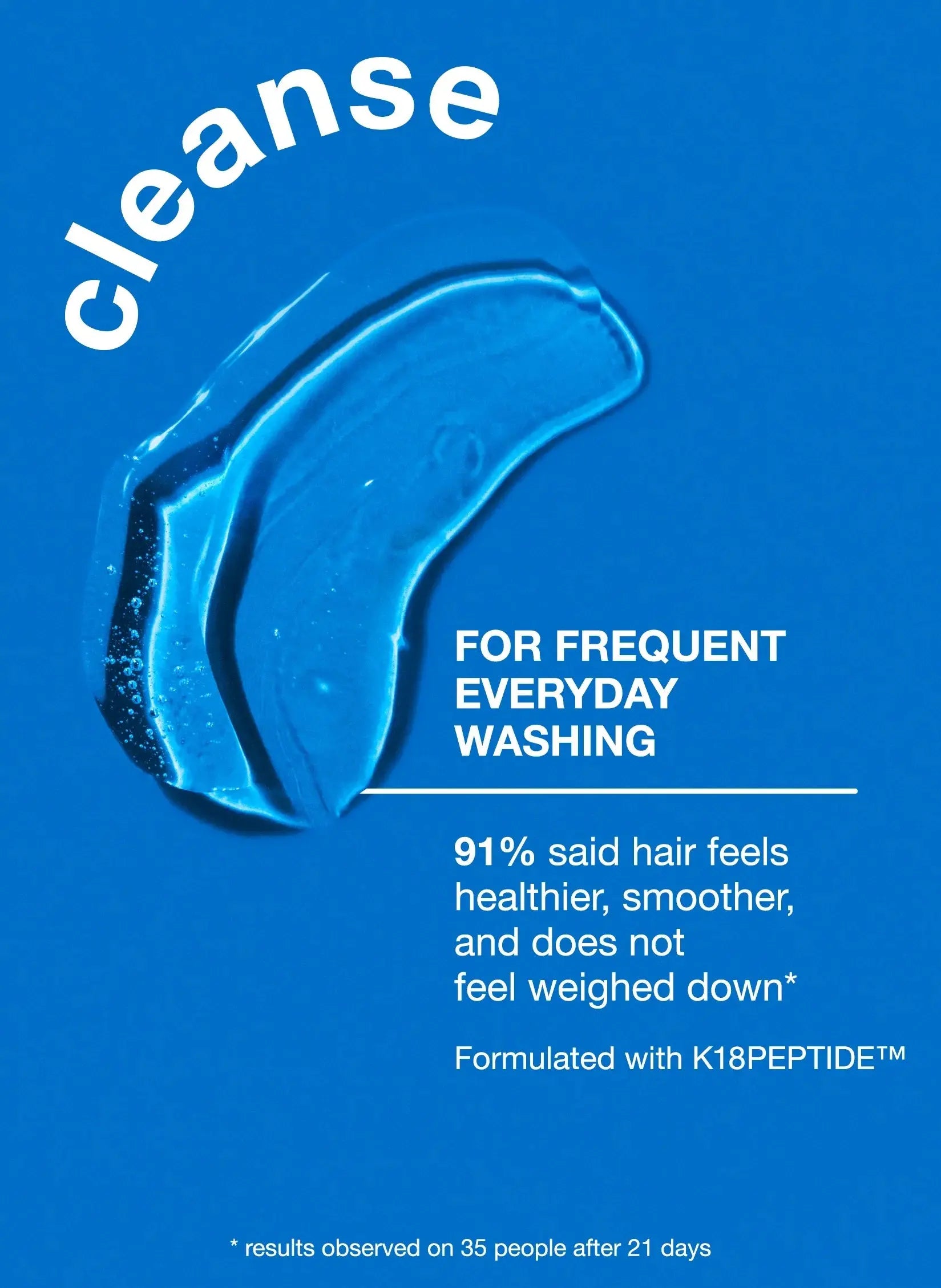 一款不褪色、pH 值优化的洗发水,含有 K18PEPTIDE™,可有效清洁,同时保持头发健康,使头发感觉强韧、顺滑、健康。