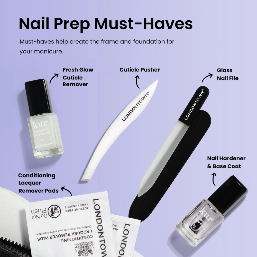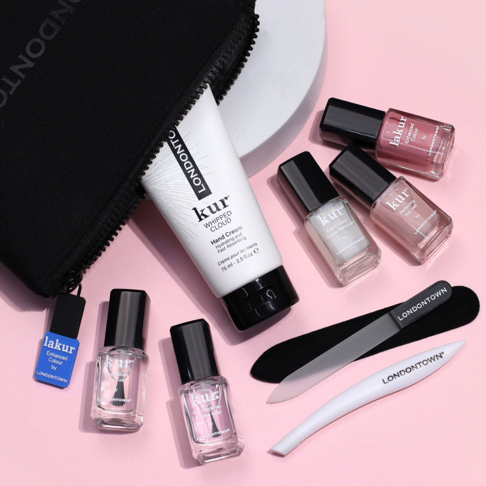 Experience the complete Londontown nail care system with this comprehensive discovery set. From prep to polish, this carefully curated collection includes everything needed for a professional-quality manicure at home. The set features essential tools, treatments, and colour, combining Londontown's innovative formulas with their signature botanical ingredients for healthier, stronger nails.