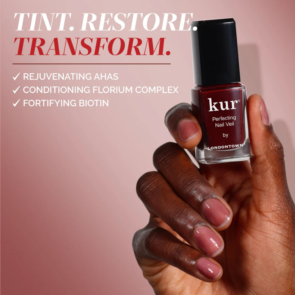 Londontown kur Perfecting Nail Veil is formulated with gently exfoliating ingredients such as Glycolic Acid, Lactic Acid, and Malic Acid to smooth rough nails and lend extra hydration for smooth, healthy nails.