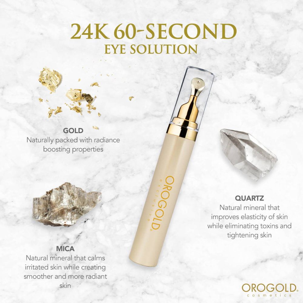 - Quick Fix: Apply Orogold 24K 60 Second Eye Solution to clean skin, allow to dry for 60 seconds, then gently pat any residue.