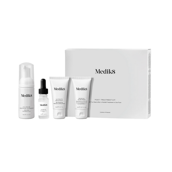 The Medik8 Post-Treatment Clinical Kit is specifically curated to nurture and protect compromised skin following professional treatments or chemical peels.