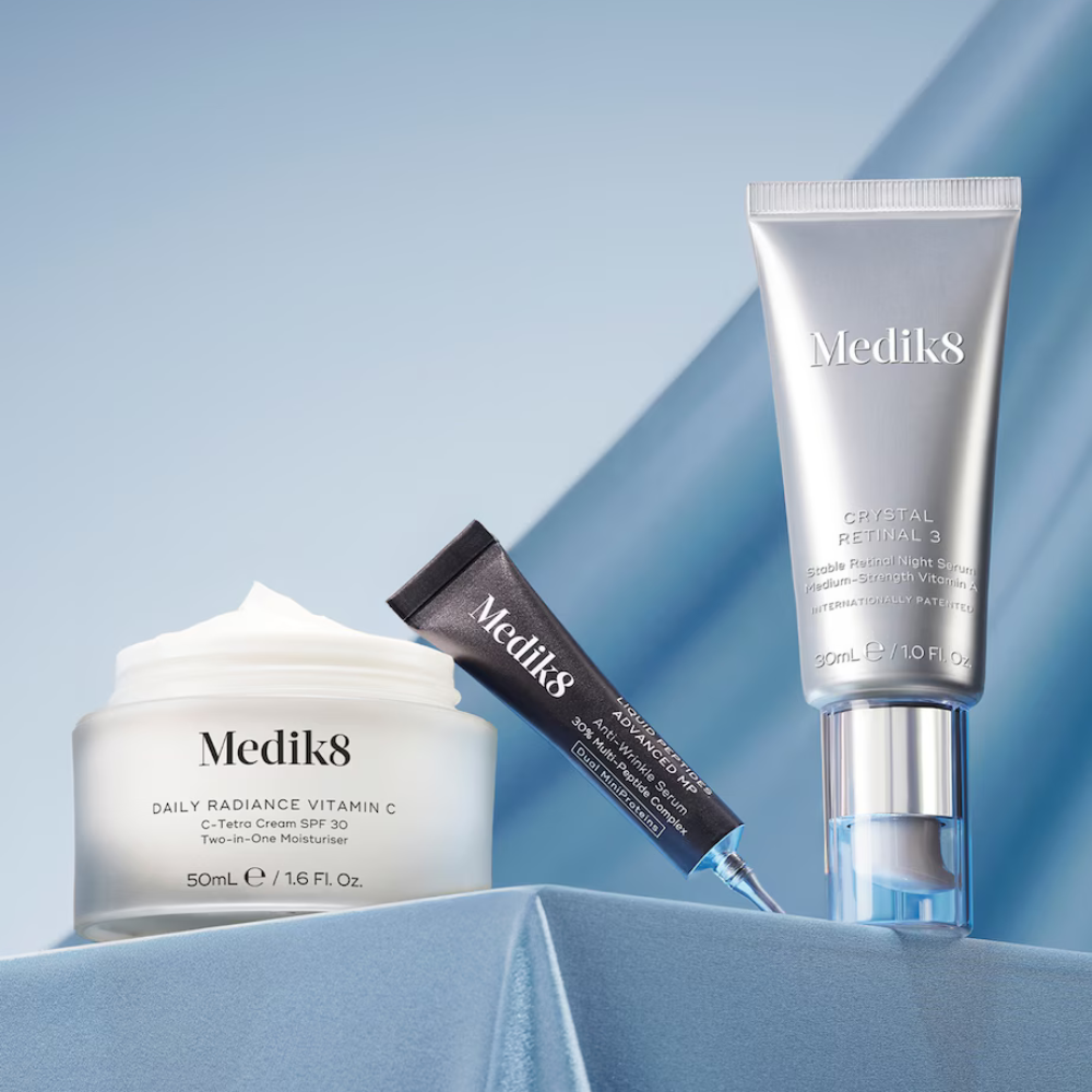 This age defying & radiance boosting trio is perfect for those concerned with visible signs of ageing. It includes two full size products plus a bonus deluxe sized sample. Packed with antioxidants, retinol, and skin-firming peptides, it's the perfect introduction to Medik8's renowned anti-ageing range.
