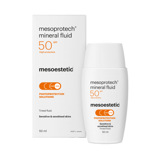 When it comes to protecting sensitive and sensitised skin from harmful UV rays, Mesoestetic Mesoprotech Mineral Fluid SPF50+ offers exceptional photoprotection with exclusively mineral filters that are gentle on delicate skin. This fluid sunscreen features a subtle tint that helps to minimise the white cast typically associated with mineral sunscreens, leaving your skin with a natural, even appearance.