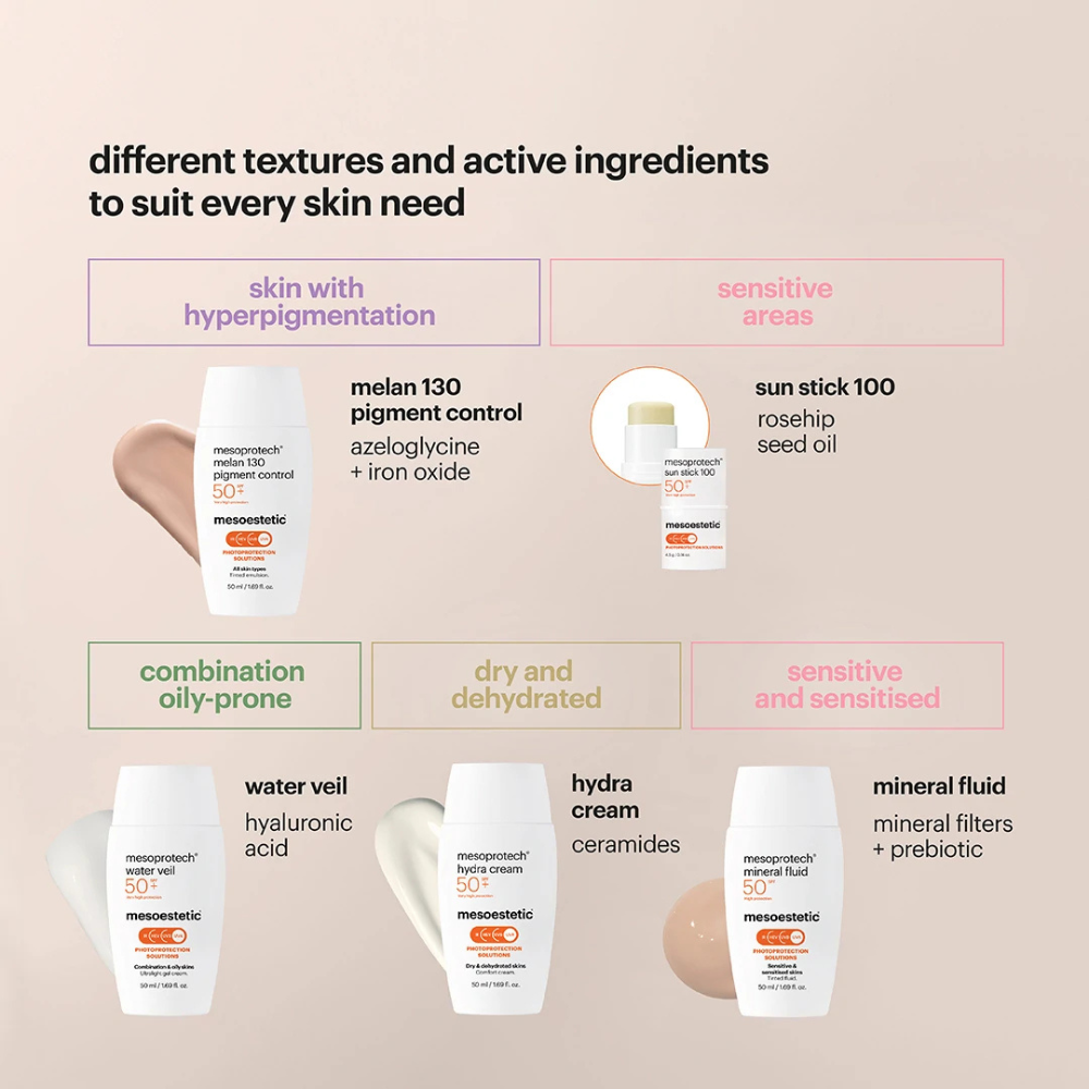 Make Mesoestetic Mesoprotech Mineral Fluid SPF50+ part of your daily skincare ritual for optimal sun protection.