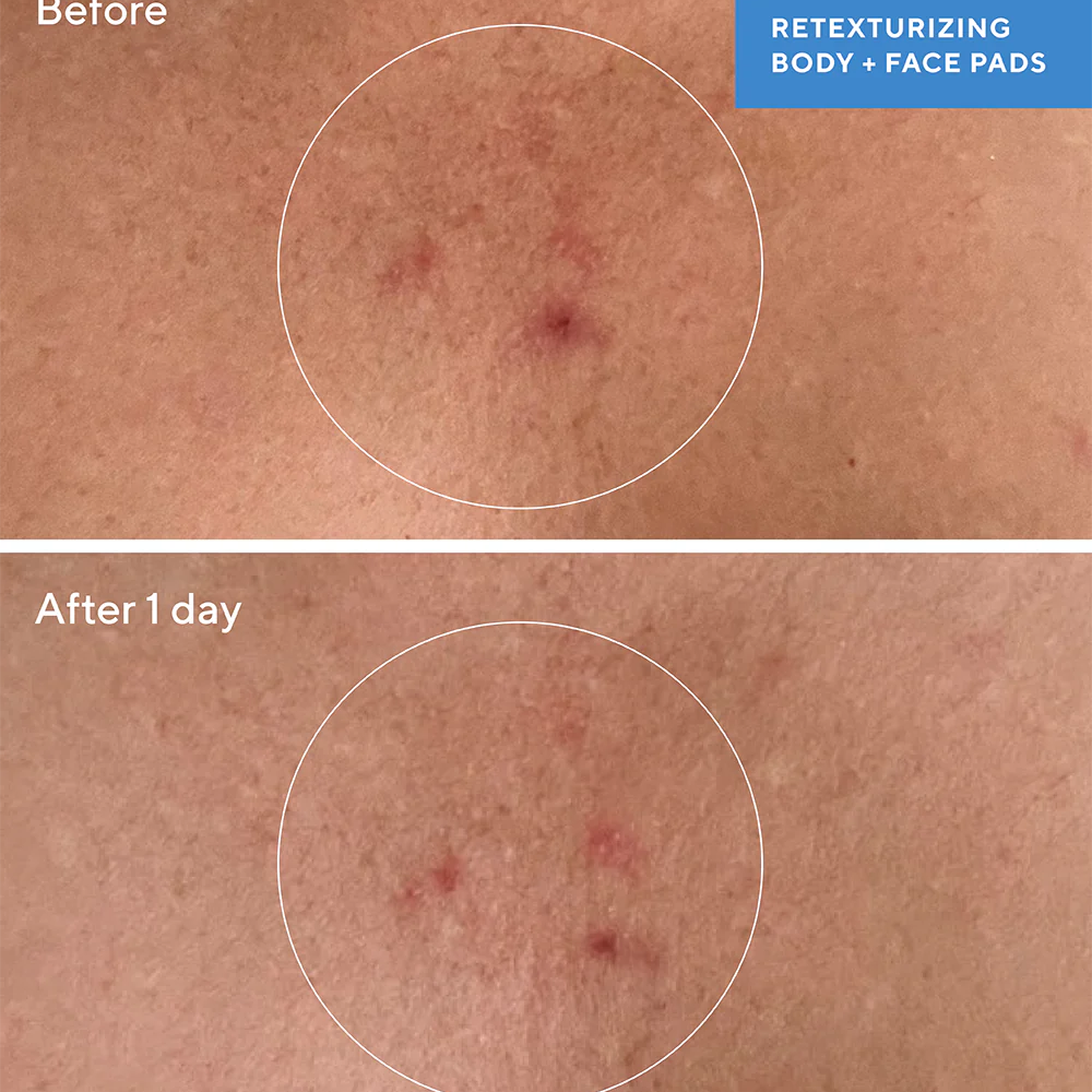 Murad Retexturizing Body Pads are a powerful, multi-tasking treatment designed to combat a range of skin concerns on both body and face. These innovative pads swiftly tackle breakouts, keratosis pilaris (KP), and ingrown hairs while simultaneously soothing inflamed skin.