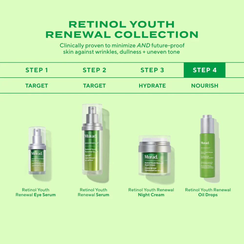 Make Murad Retinol Youth Renewal Face Oil Drops part of your nightly skincare ritual for glow-boosted, bouncy skin by morning!