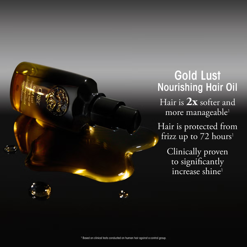Oribe Gold Lust Nourishing Hair Oil is the ultimate lightweight luxury oil that transforms hair with every drop. This fast-absorbing elixir penetrates deep into each strand to repair, strengthen and condition, leaving hair silky soft, smooth and full of shine without weighing it down.