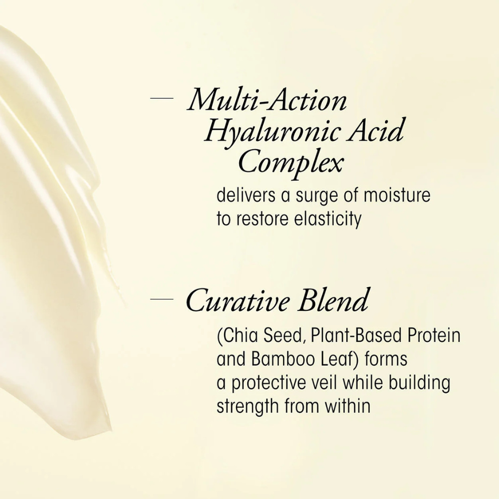 A multi-action hyaluronic acid complex delivers deep hydration, improving elasticity while green tea, daisy and honeysuckle extracts fortify from root to tip. The addition of Oribe’s Signature Complex protects hair from oxidative stress and environmental aggressors. The result is smoother, softer hair that’s 2.9x more elastic and 133% stronger*, making styling effortless and hair healthier with every wash.