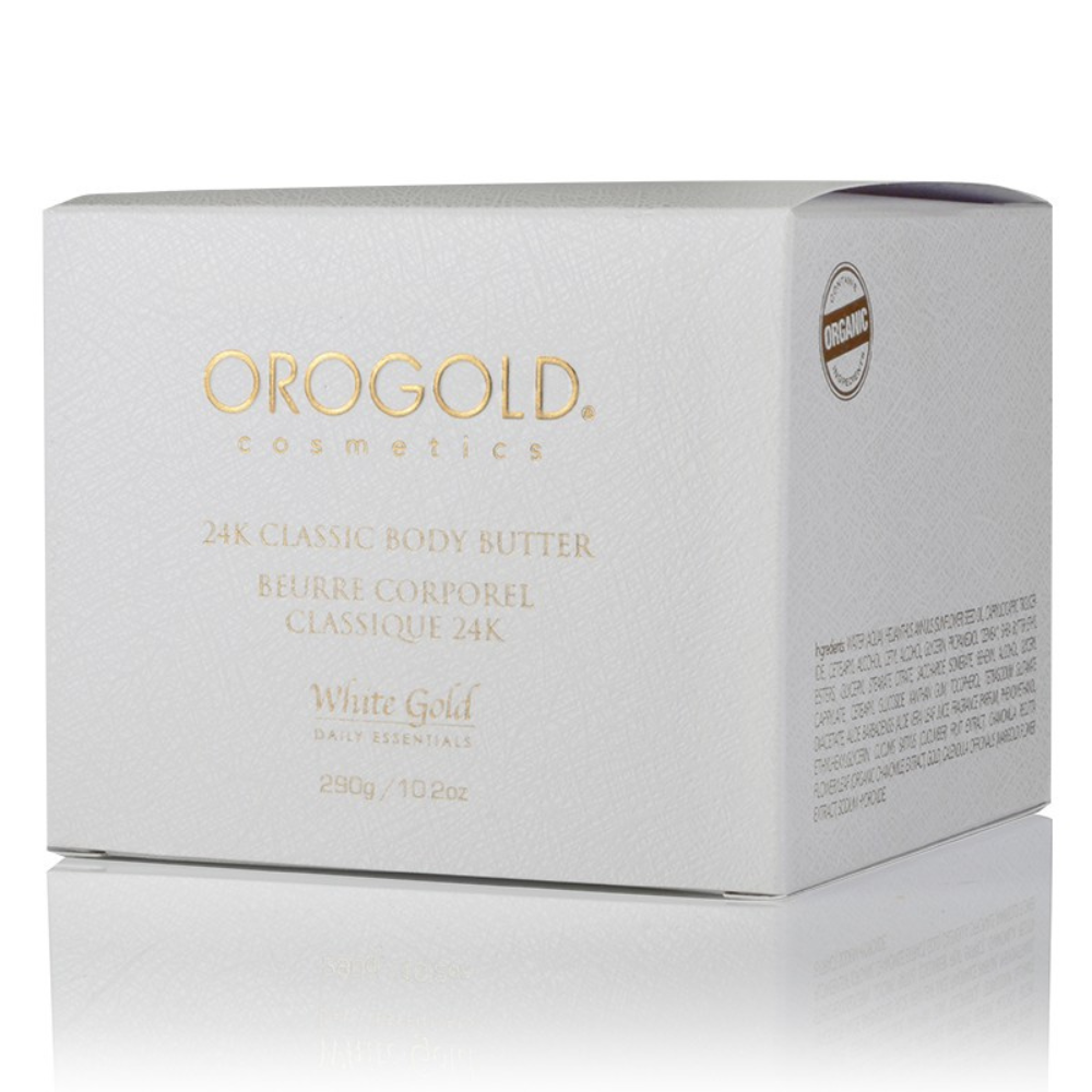 Orogold Cosmetics 白金 24K 经典身体乳隆重推出,助您打造极致柔嫩水润肌肤的全新必备单品。这款精致的身体乳蕴含葵花籽油和乳木果油等优质成分,为您的肌肤带来水润的呵护。