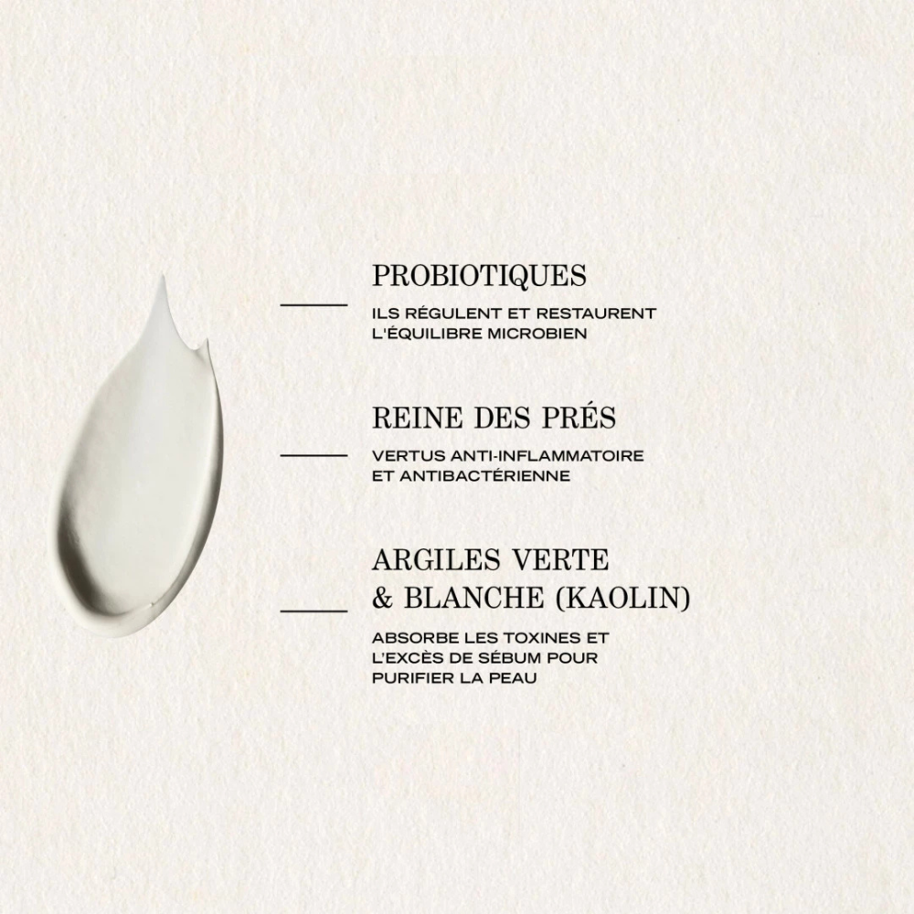 The mask's innovative probiotic technology works to regulate the skin's microbiome, while its unique clay complex helps to unclog and visibly tighten pores. With a luxurious creamy texture that rinses away effortlessly, it leaves skin feeling fresh and purified, delicately scented with fresh-cut leaves and white musk.