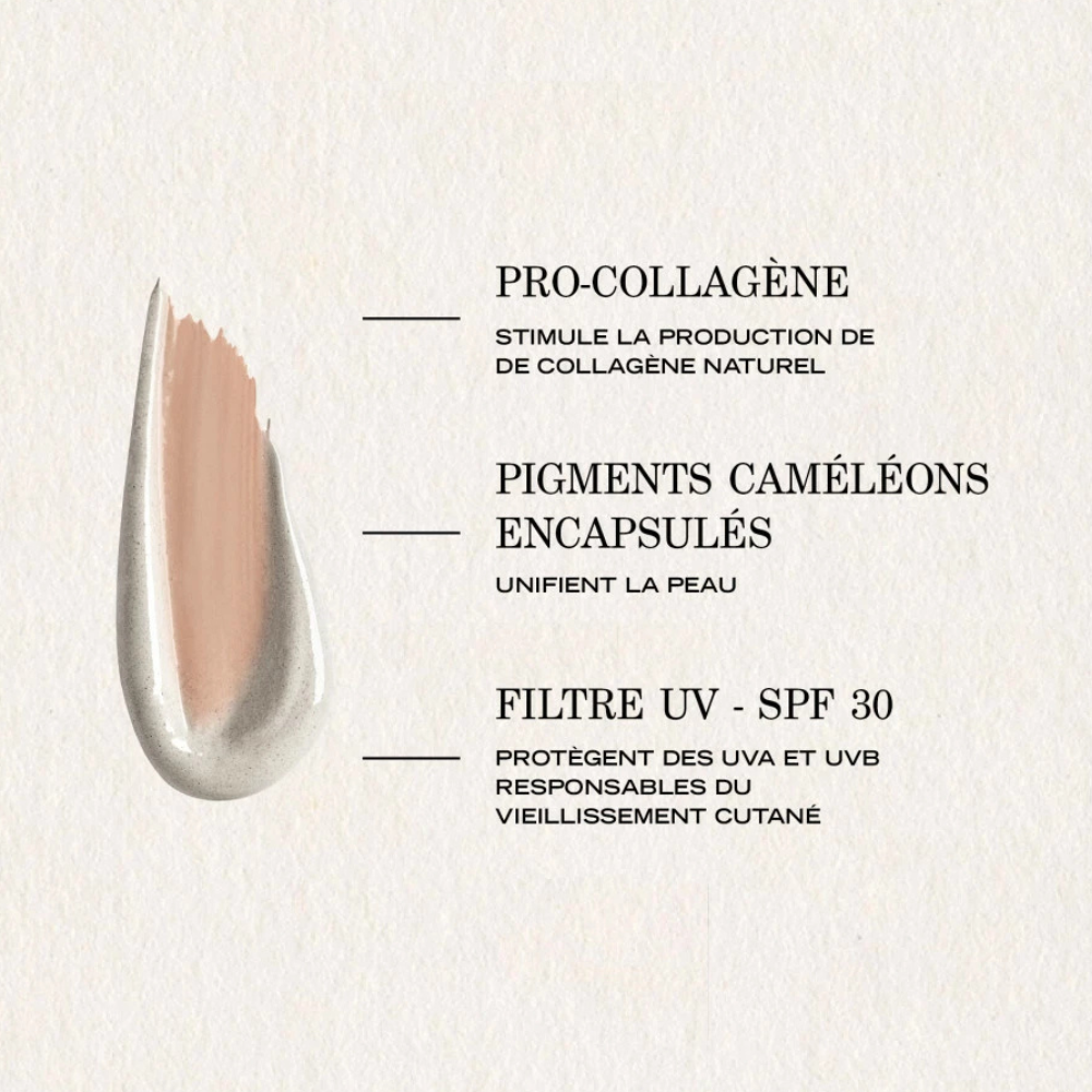 The sophisticated formula incorporates chameleon pigments in a universal shade that adapts to your skin tone, while providing comprehensive UVA and UVB protection. This multi-tasking cream helps prevent premature aging while instantly evening out the complexion for a lifted, radiant appearance.