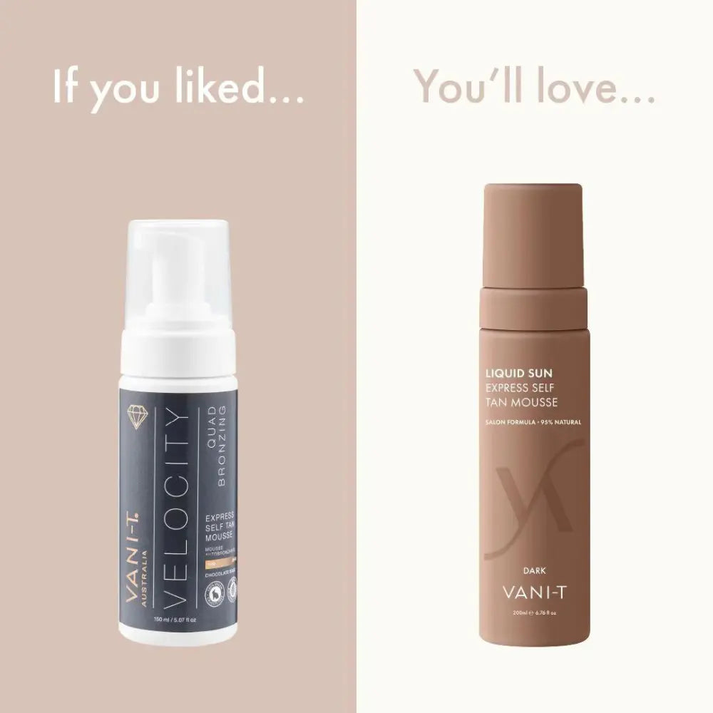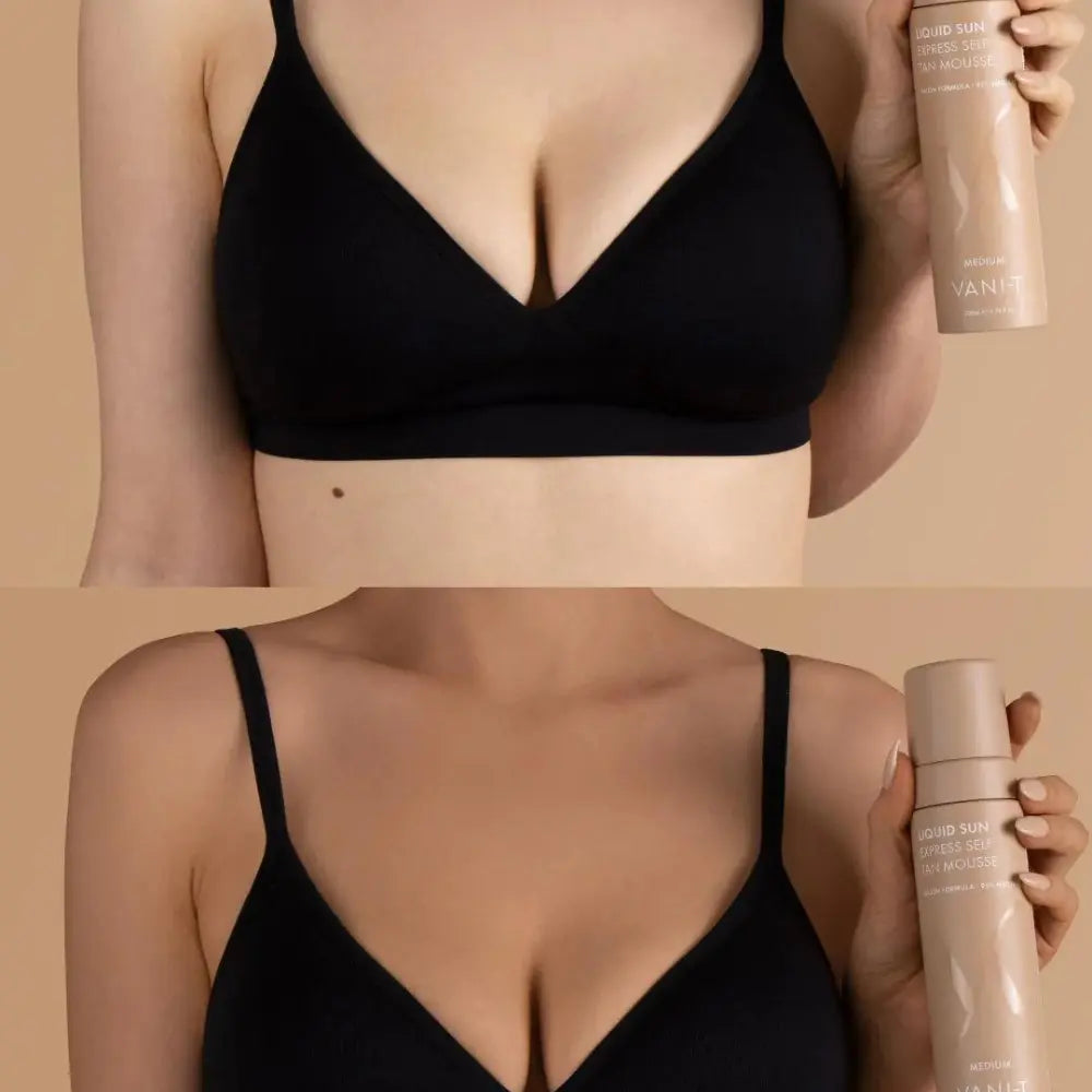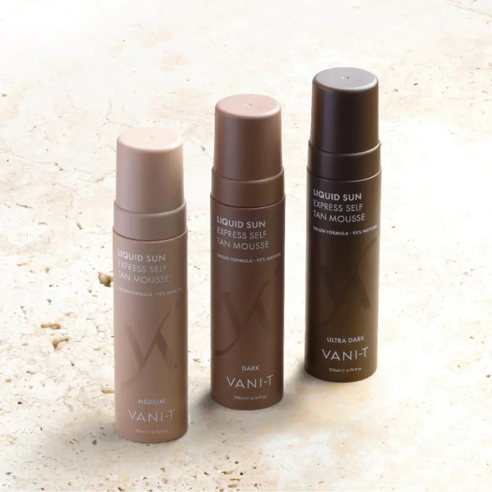 Vani-T Liquid Sun® Express Self Tan Mousse - Medium is a culmination of 19 years of tanning and skincare expertise, encapsulated in a revolutionary 200ml hybrid formula. This self-tanning mousse is not just about achieving a sun-kissed glow; it's a synergy of skincare and tanning, designed to provide your skin with the nourishment it needs while delivering a radiant summer complexion all year round.