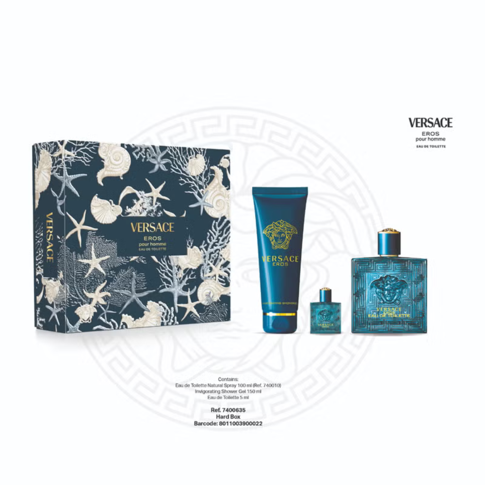 Versace Eros Pour Homme 套装(EDT 100ml + 沐浴露 150ml+ EDP 5ml)