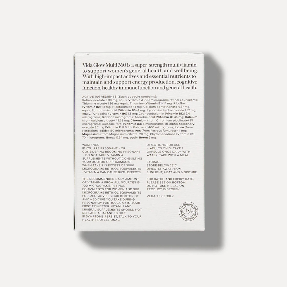Make Vida Glow Women's Health Multi 360 part of your daily health routine to fill vital nutritional gaps and supercharge your day.