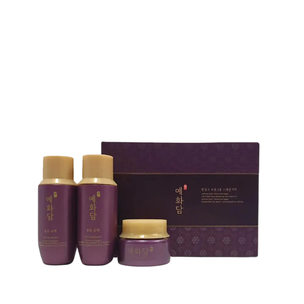 Yehwadam Hwansaenggo Ultimate Rejuvenating Skincare Kit is a three-piece Korean skincare set that work in perfect harmony to deliver the ultimate rejuvenating experience. Begin your ritual with the Hwansaenggo Ultimate Rejuvenating Toner, which deeply hydrates and prepares your skin for the next step. Follow up with the Hwansaenggo Ultimate Rejuvenating Emulsion, a lightweight moisturizer that delivers a burst of hydration to your skin, leaving it feeling soft and supple.
