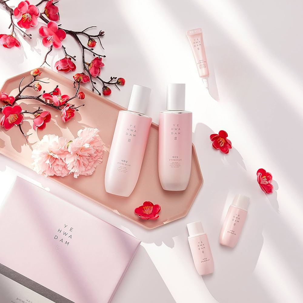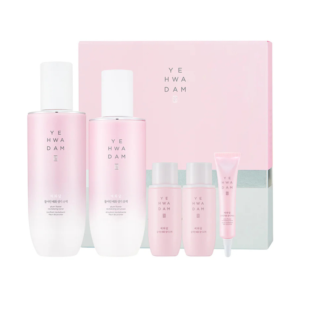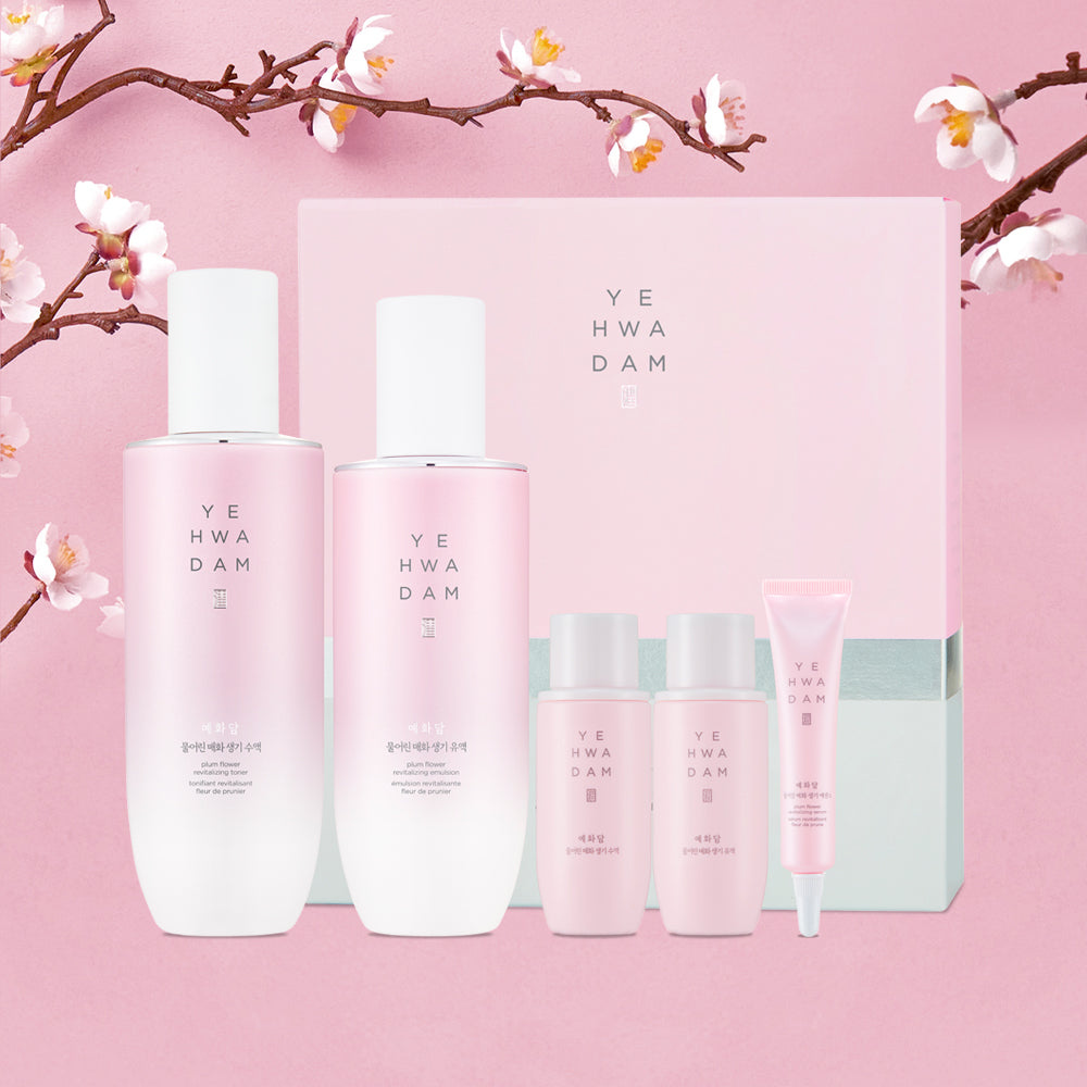 - Yehwadam Plum Flower Revitalizing Emulsion: Follow with emulsion, applying a moderate amount to face and neck, gently massaging in upward motions.